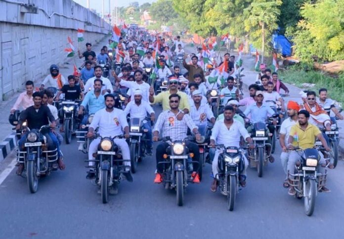 वाराणसी/-79वें स्वतंत्रता दिवस के उपलक्ष्य में शुक्रवार को भिखीपुर गांव (मिर्जामुराद) के सामने हाइवे से भाजपा जिला उपाध्यक्ष प्रभात सिंह व अधिवक्ता व भाजपा नेता धीरज सिंह राजपूत के नेतृत्व में भव्य तिरंगा यात्रा और बाइक रैली निकला।दो सौ से अधिक बाइक पर सवार युवा हाथ में तिरंगा लेकर भ्रमण करते रहे आकर्षण का केंद्र रहा।तिरंगा यात्रा भिखीपुर से होते हुए प्रतापपुर,आषाढ़,राजपुर,चक्रपानपुर,गौर (मिर्जामुराद) बाजार,रूपापुर होते हुए खजुरी में आकर समाप्त हुआ।यात्रा के दौरान भारत माता की जय और वंदे मातरम् के नारे गूंजते रहे साथ में चल रही डीजी वाहन पर देश भक्ति संगीत बज रहे थे।
