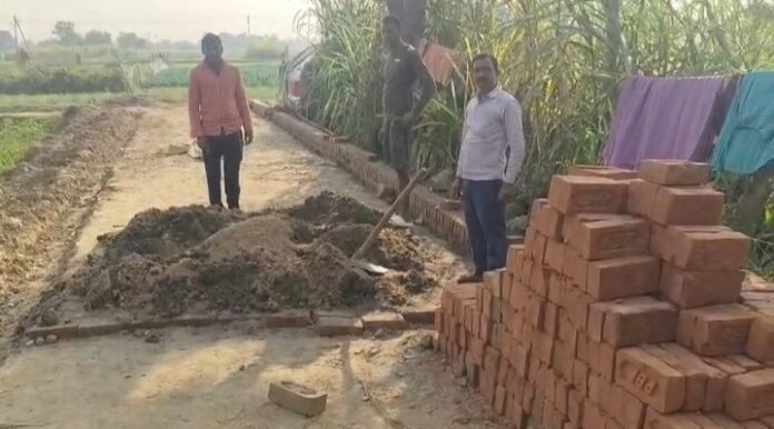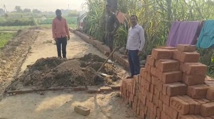 रोहनिया विधायक निधि से पास सड़क में घपलेबाजी का खेल नम्बर एक ईंट की जगह हो रहा नम्बर दो ईंटो का प्रयोग