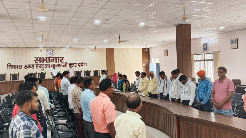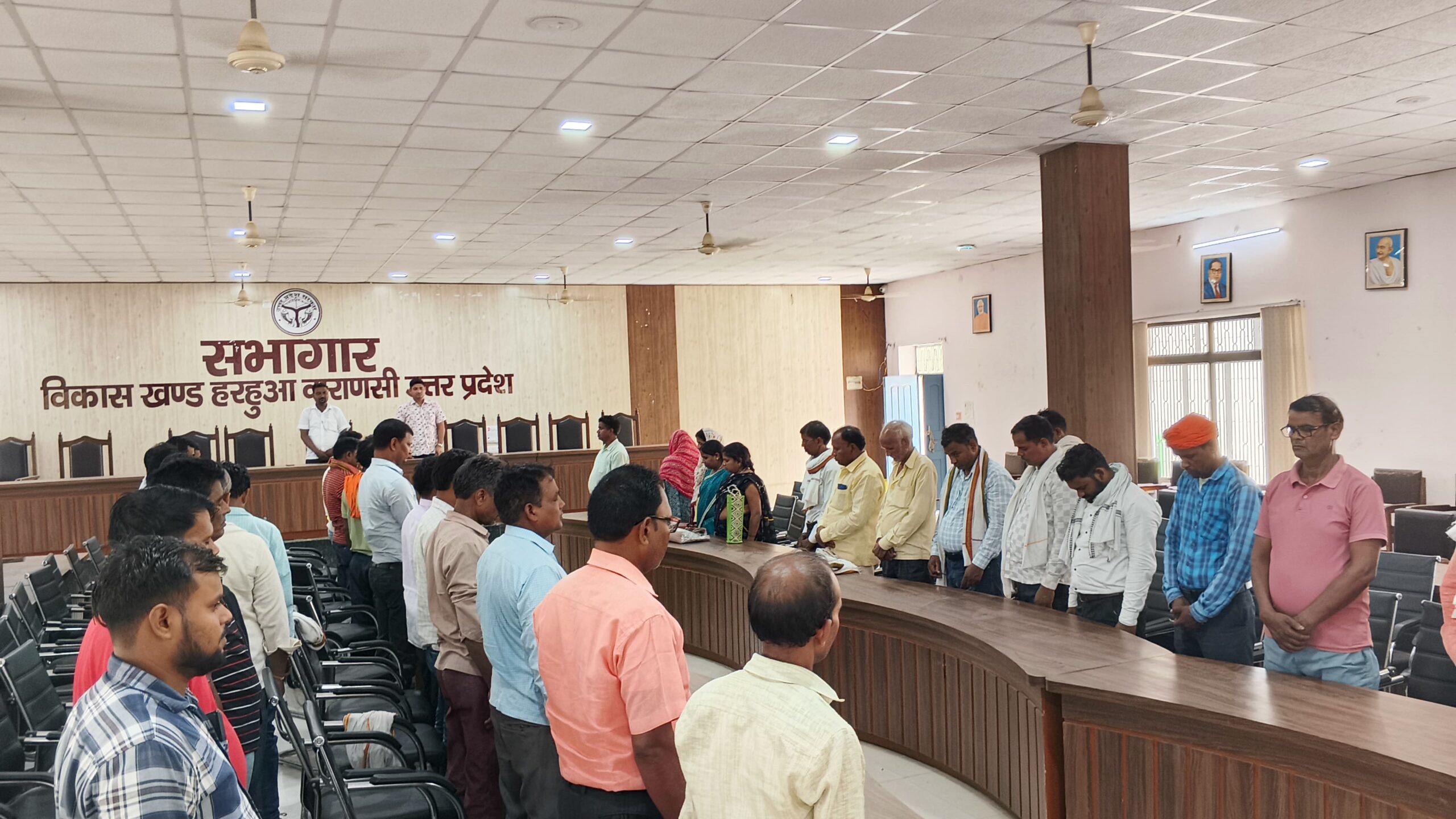 *वाराणसी/-हरहुआ विकास खण्ड के ग्राम पंचायत बलुआ के राजस्व गांव टेकीपुर मे सफाई कर्मचारी के पद पर नियुक्त वर्तमान समय मे विकास भवन में कार्यरत राजेश कुमार का 17 जून को आकस्मिक निधन हो गया।मर्माहत सफाई कर्मचारियों ने बुधवार को ब्लाक सभागार में एडीओ पंचायत रवि सिंह व सफाई कर्मचारी संघ के ब्लाक अध्यक्ष,मण्डल अध्यक्ष ओमकार नाथ के नेतृत्व में समस्त सफाई कर्मचारी इकट्ठा होकर शोक सभा कर मृतक आत्मा के शांति हेतु श्रद्धांजलि दी।शोक सभा मे प्रमुख रूप ब्लॉक कोषाध्यक्ष सिकन्दर,रविशंकर,राजकुमार,संजय यादव,जितेंद्र कुमार पटेल,अजय कुमार,धनन्जय,नरेंद्र कुमार संजय कुमार,देवेंद्र प्रताप सिंह,दिनेश गुप्ता,सभाजीत,अजीत कुमार पाल,राजकुमार सिंह सुनीता,संगीता,आरती,माधुरी,दिनेश राजभर व सिजामुद्दीन सहित अन्य सफाई कर्मी व ब्लाककर्मी शामिल रहे।*