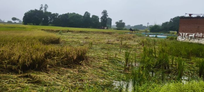 बे-मौसम बारिश से धान की फसल बर्बाद किसानों के चेहरों पर छाई मायूसी