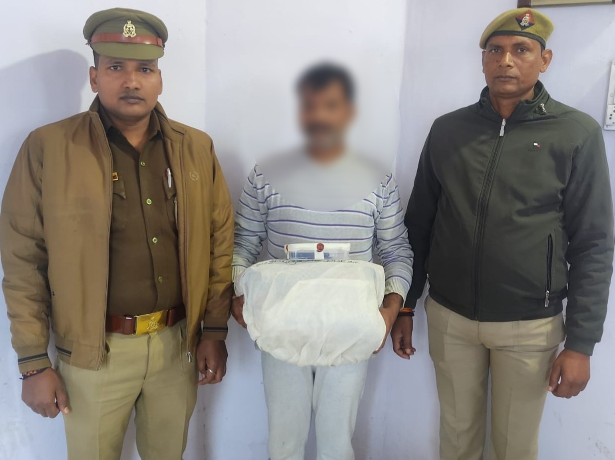 वाराणसी/-पुलिस आयुक्त वाराणसी मोहित अग्रवाल के निर्देशन में अपराध व अपराधियों पर प्रभावी नियंत्रण हेतु चलाए जा रहे अभियान के तहत रोहनिया पुलिस को बड़ी सफलता मिली है।रोहनिया पुलिस टीम ने चेकिंग के दौरान 3.984 किलोग्राम अवैध गांजा के साथ एक आरोपी को गिरफ्तार किया है।ऑपरेशन चक्रव्यूह के तहत रविवार को तड़के करीब 00:40 बजे मोहनसराय अंडरपास थाना रोहनिया क्षेत्र में चेकिंग के दौरान आरोपी विक्रांत मिश्रा उर्फ विक्की को पकड़ा गया।तलाशी के दौरान उसके कब्जे से कुल 3.984 किलोग्राम नाजायज गांजा बरामद हुआ।इसके अतिरिक्त जामा तलाशी में 350 रुपये नकद तथा एक की पैड मोबाइल फोन (अउए कंपनी) भी मिला। गिरफ्तार आरोपी विक्रांत मिश्रा उर्फ विक्की पुत्र स्व रामाकांत मिश्रा निवासी नटनिया दाई मंदिर चांदमारी थाना शिवपुर वाराणसी का निवासी है,जिसकी उम्र करीब 42 वर्ष बताई जा रही है।बरामदगी व गिरफ्तारी के आधार पर रोहनिया पुलिस ने एनडीपीएस एक्ट के तहत मुकदमा पंजीकृत कर आवश्यक विधिक कार्यवाही की।पुलिस रिकॉर्ड के अनुसार अभियुक्त के विरुद्ध पूर्व में भी एनडीपीएस एक्ट के तहत मुकदमे दर्ज हैं।इस कार्यवाही में थाना रोहनिया पुलिस टीम की सराहनीय भूमिका रही।गिरफ्तार करने वाले टीम में मुख्य रुप से प्रभारी निरीक्षक रोहनिया राजू सिंह,उप निरीक्षक चौकी प्रभारी मोहनसराय अमीर बहादुर सिंह,उप निरीक्षक श्याम नारायण,हेड कांस्टेबल विरेंद्र वर्मा एवं कांस्टेबल राकेश कुमार शामिल रहे।